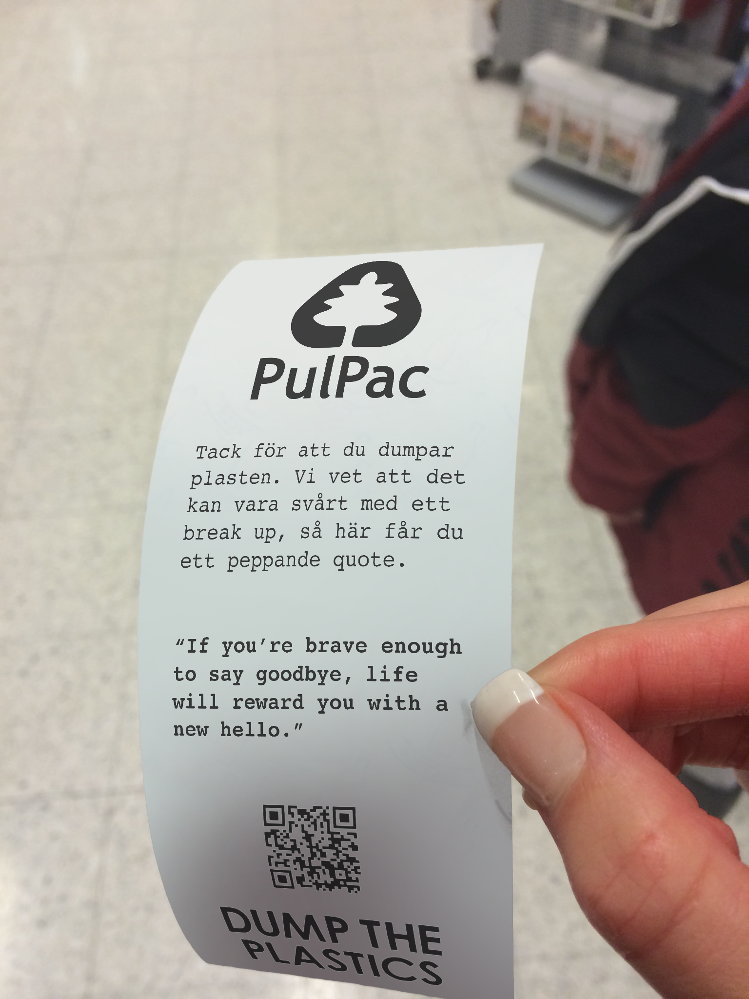 Interaktiv soptunna / Släng din plast till de ljuva tonerna av James Blunt ‘Goodbye my lover’. Ut kommer ett kvitto med en inspirerande quote, några peppande ord på vägen, för dig som är mitt i ett break-up.